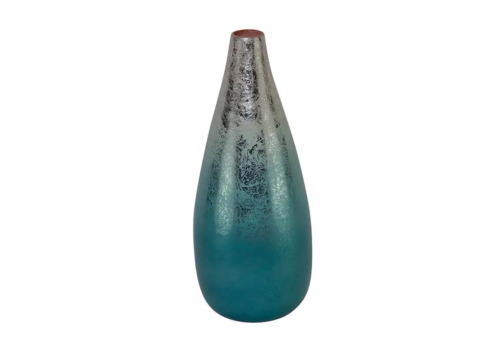 Our Polished Silver & Blue Glass Vase is ideal as an addition to your custom design. It's perfect for adding a touch of luxury and elegance to your wedding decor.