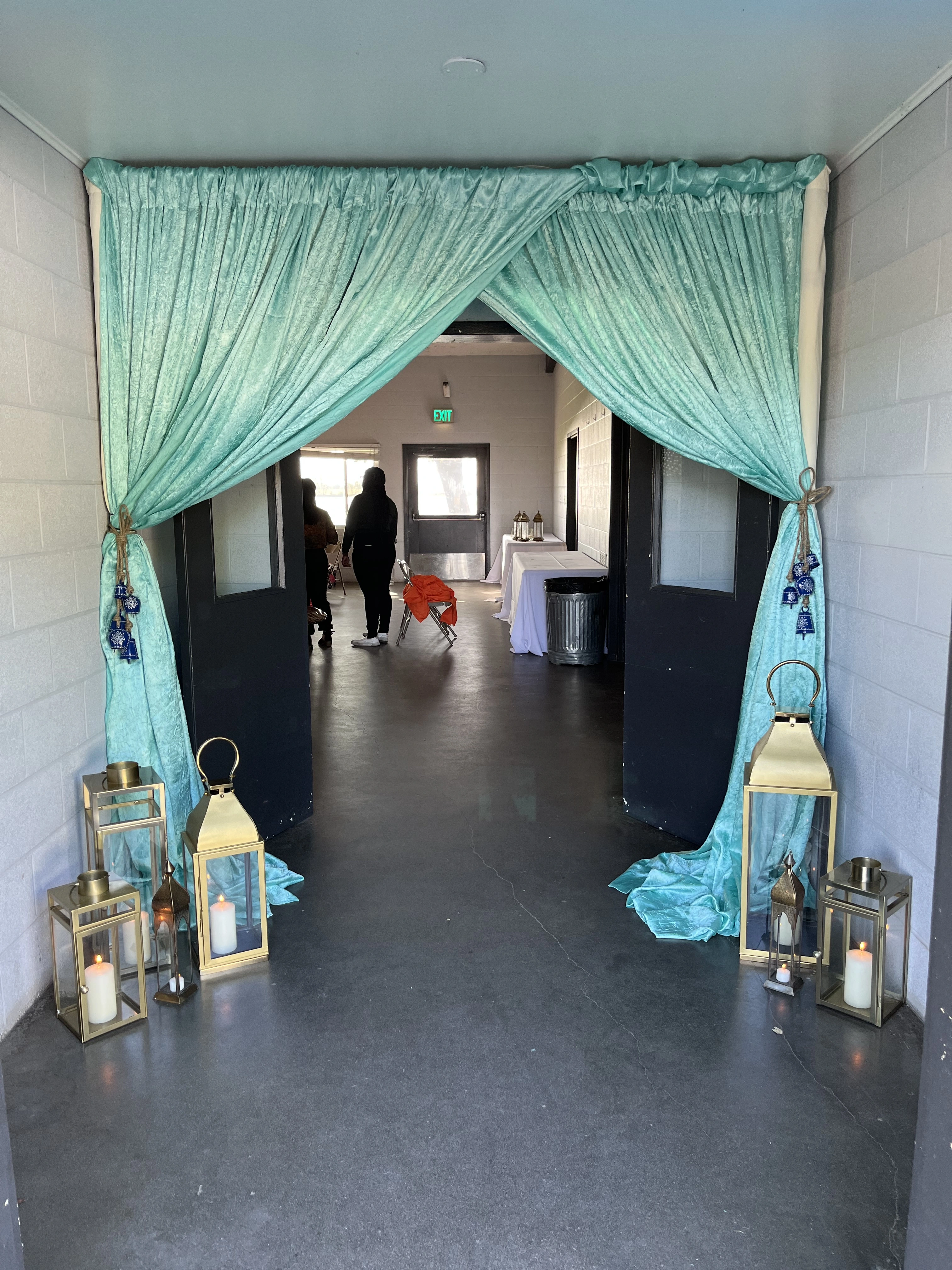 Add some Entrance Decor with some Custom Draping! Transform your venue's entrance into a grand spectacle with our custom draping options. Choose from various colors and materials to match your theme. Contact us today to discuss your vision!