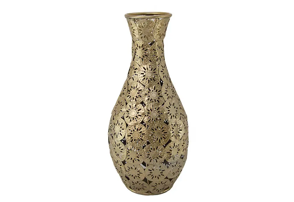 Our Gold Colored Vase is great as an accent piece while being an addition to your custom design. It's perfect for adding a touch of luxury and elegance to your wedding decor.