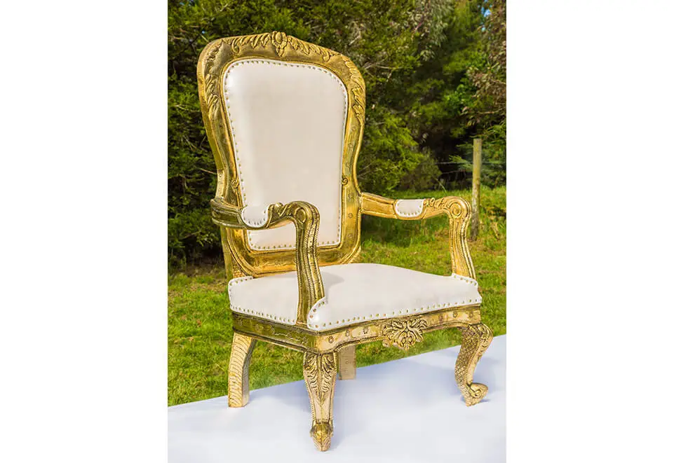 This Brass Armchair with Hand Carved Design is a beautiful and luxurious seating option for your wedding. It adds a touch of elegance and sophistication to your venue.