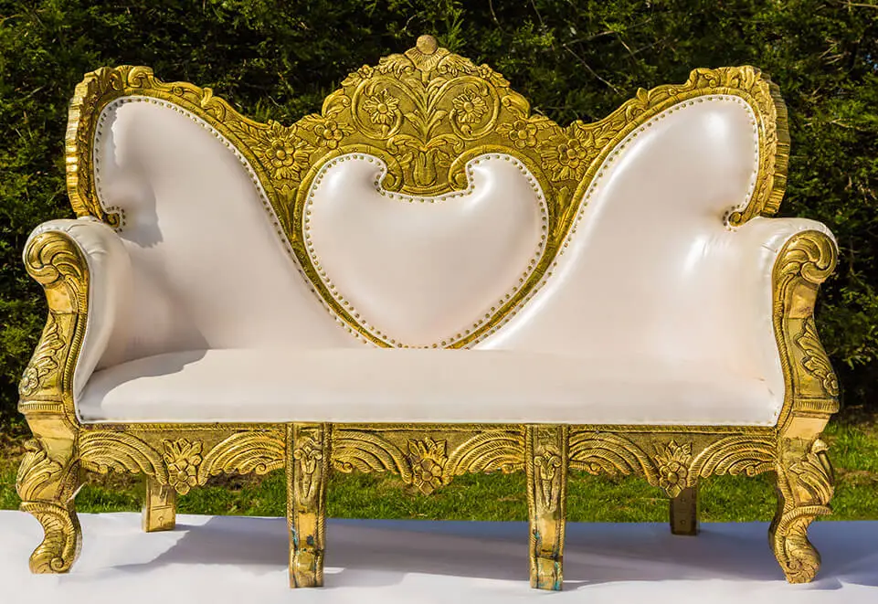 Our Large Heart Shaped Sofa with Hand Carved Design and Leather is a unique and luxurious seating option for your wedding. It's perfect for adding a touch of romance and elegance to your venue.