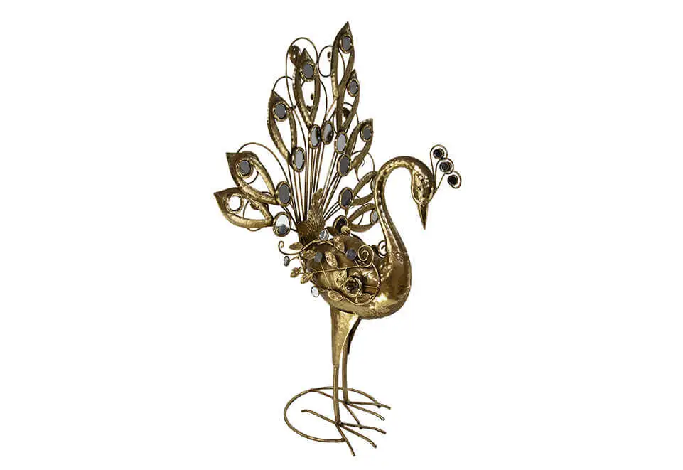 Our Medium Sized Hand Crafted Golden Colored Metal Peacock is a luxurious and elegant addition to your wedding decor. It's perfect for adding a touch of sophistication and vibrant color to your venue.