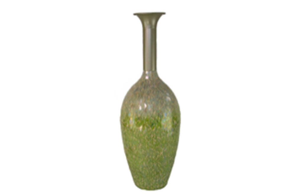This Glass Vase with Mosaic Shades of Green & Hazel is a beautiful and unique addition to your wedding venue. It's perfect for adding a touch of elegance and vibrant color to your decor.