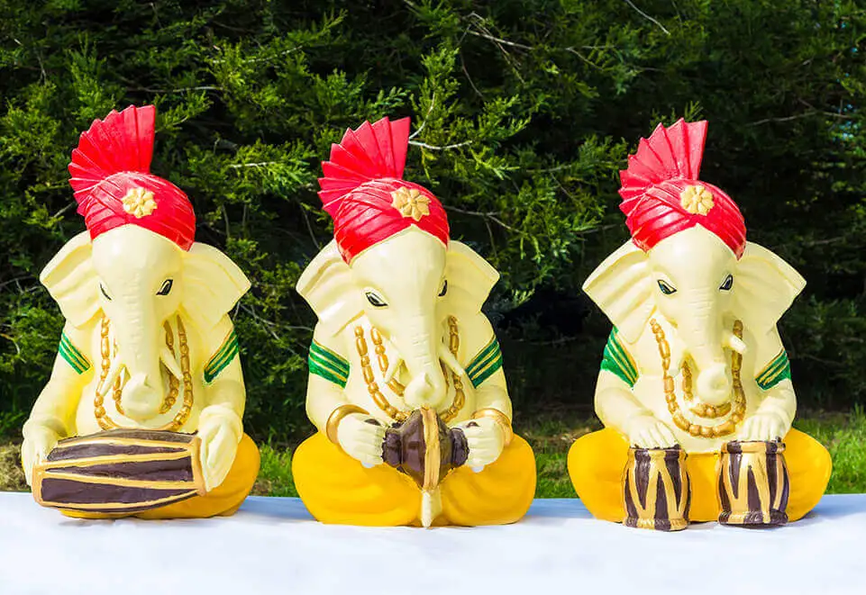 Our Three-Piece Matching Set of Ganesha Performing Music is a fun and unique decorative piece for your Sangeet or wedding ceremony. It adds a touch of cultural charm and festive spirit to your venue.