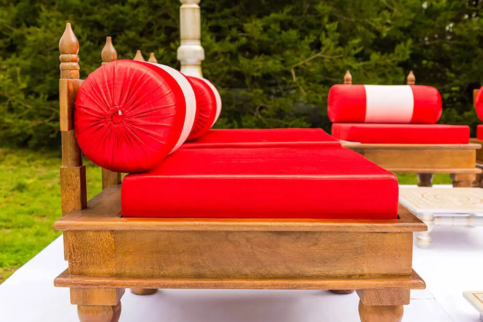 Bring a touch of vibrant elegance to your wedding venue with our Red Low Wooden Stool. The square bright red cushion combined with a wooden frame is ideal for themed seating or as an accent piece in your wedding decor, reflecting the festive spirit of your celebration.