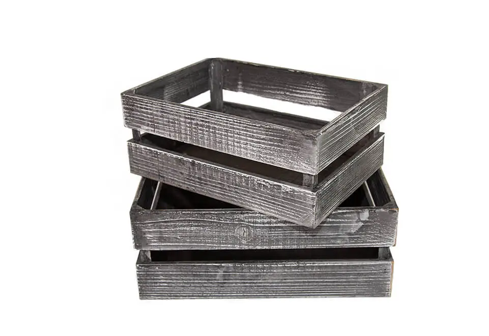 Our Light Grey & White Colored Crates Great as an Addition to Your Custom Design are a versatile and stylish addition to your wedding venue. They're perfect for adding a touch of rustic charm and practicality to your decor.